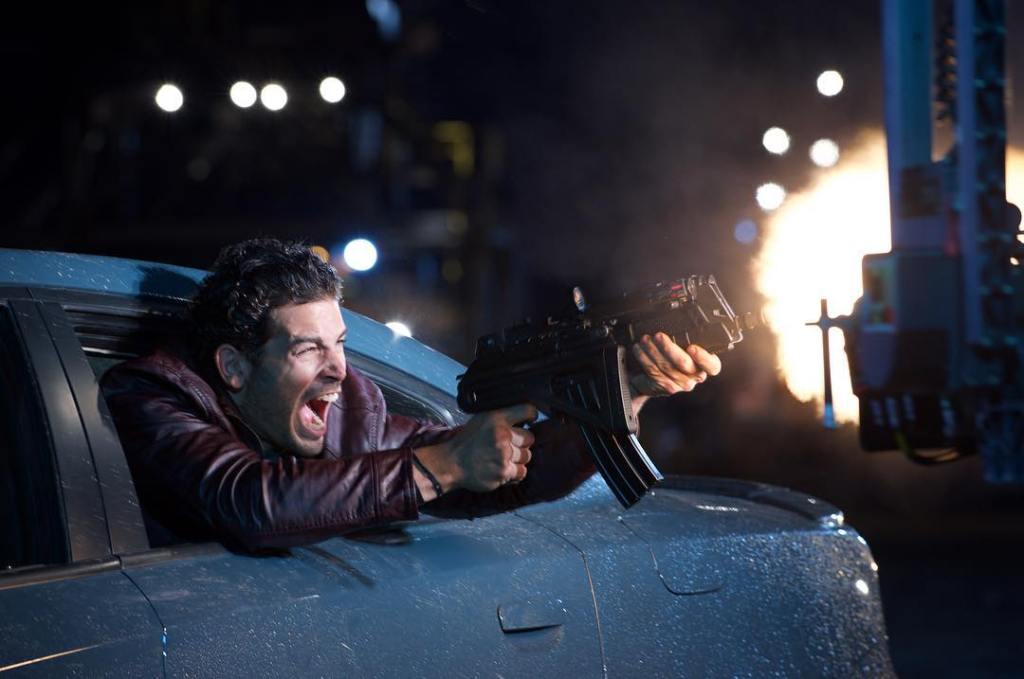 “Boom. What was cool about that shot was, when we did the first take of that car getting hit, it went up on that container or that little construction office, and it landed directly on top. It was like this crazy coincidence. It just stayed on top of that container, so we were like, ‘That looks crazy,’ so we had to take it down and do it again, only this time we weakened the container so it would crush it.”