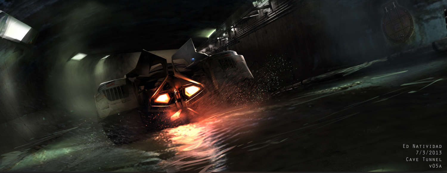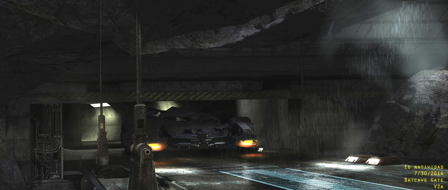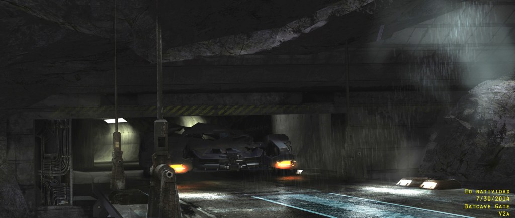 “There was a full size Batcave built on one of the stages at the studio in Michigan. It looked great but only covered 180 degrees and for the shot where the Batmobile returns needed more like 360 degrees of coverage and had to be much larger. Scanline extended the environment by creating the cavernous space that housed the Batcave and continued the ramp that extended out past the hydraulic door through the tunnel and to the large doors that let the Batmobile in or out through the lake.”