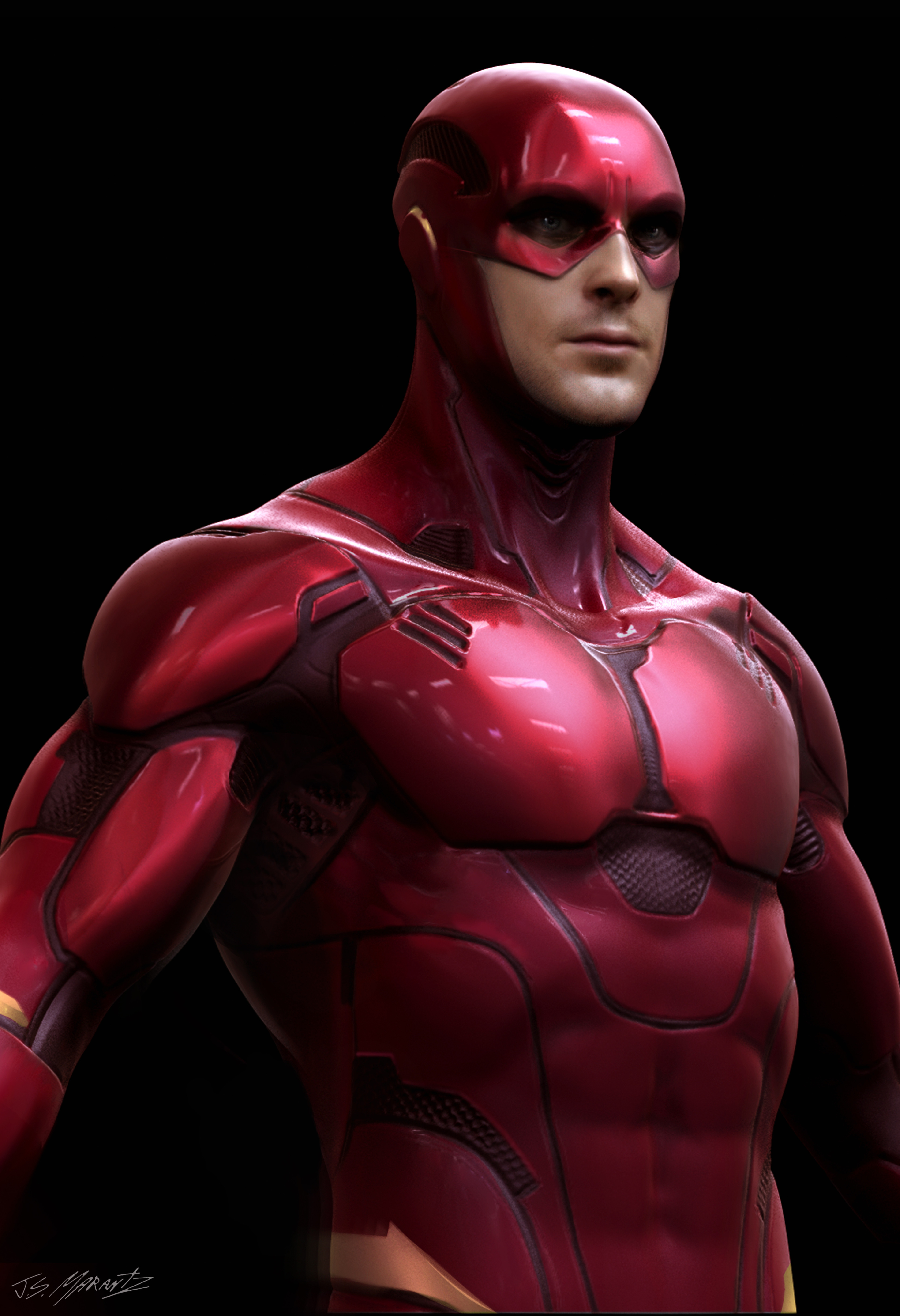 Concept artist Jerad S Marantz confirmed an early idea for this sequence would have put Barry in a prototype Flash suit sans the lightning bolt logo. You can see the full visual concept for the suit here and more of his incredible work at his ArtStation. It was Marantz who developed the initial costume concepts before passing the design off to Constantine Sekeris to keep building on, who then passed it to Ian Joyner to develop the final design seen in Zack Snyder’s Justice League.