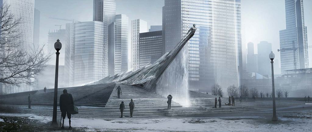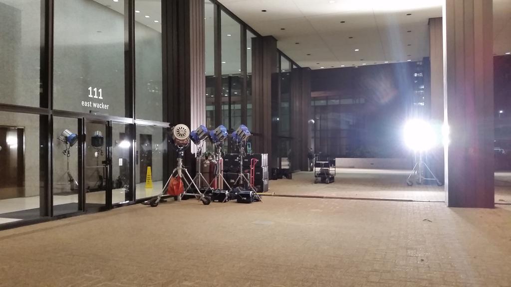 The lobby of 111 East Wacker Drive was furnished with the Daily Planet globe and logos on the floor and walls, which all went completely unseen in the final film, indicating that interior footage was shot. Amy Adams was also present on the set for shooting on 12 November 2014, wearing the same outfit she wears during Lois’ kidnapping in Problems Up Here, suggesting this sequence may have been set immediately prior. A casting call for “newspaper employees” was sent out on the 5th, set for this day.