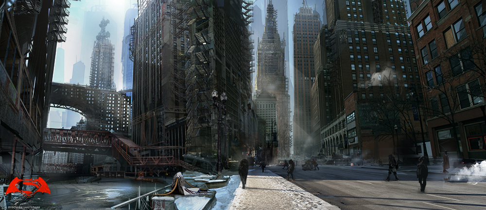 Batman v Superman was originally intended to be shot in the snow, with principal photography beginning in late 2013. Unfortunately, record low temperatures due to the polar vortex at the time made it unsafe for filming and the shoot was delayed. Concept art for the film’s original Winter look was drawn up by artists Christian Lorenz Scheurer, Ed Natividad, and Victor Martinez. Presumably in the Winter of late 2013 or early 2014, the crew conducted a handheld IMAX camera test for viability with Amy Adams in the snow, likely intended to resemble the funeral sequence considering Adams’ attire. Larry Fong has two photos of the test.