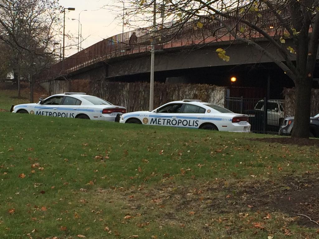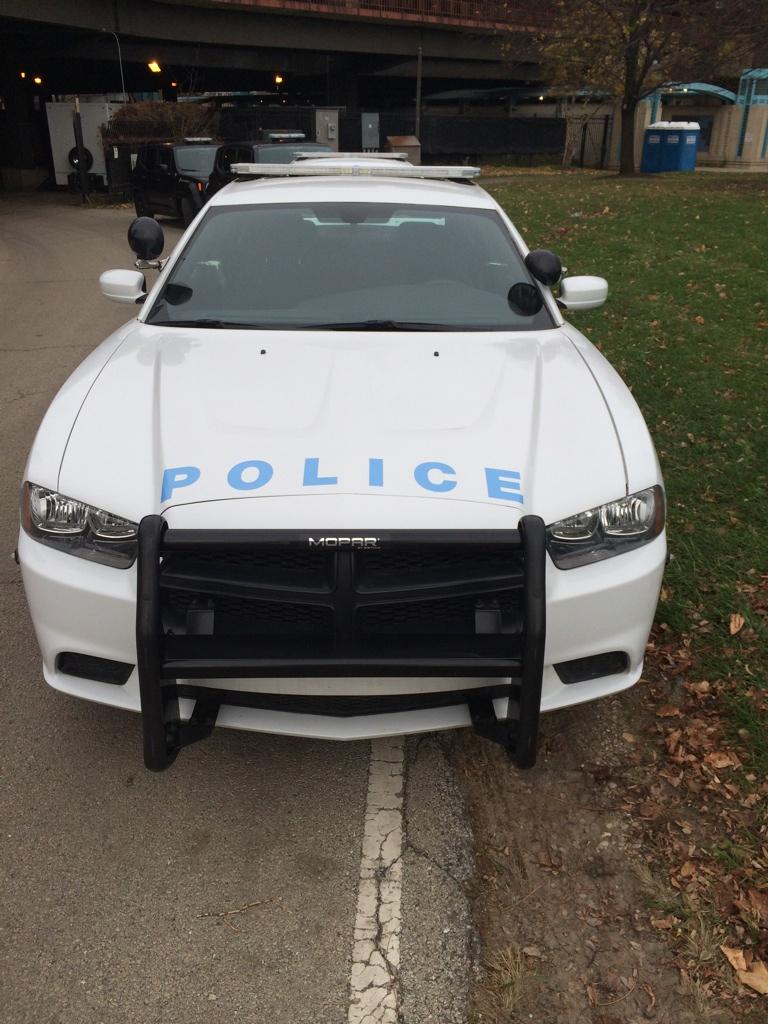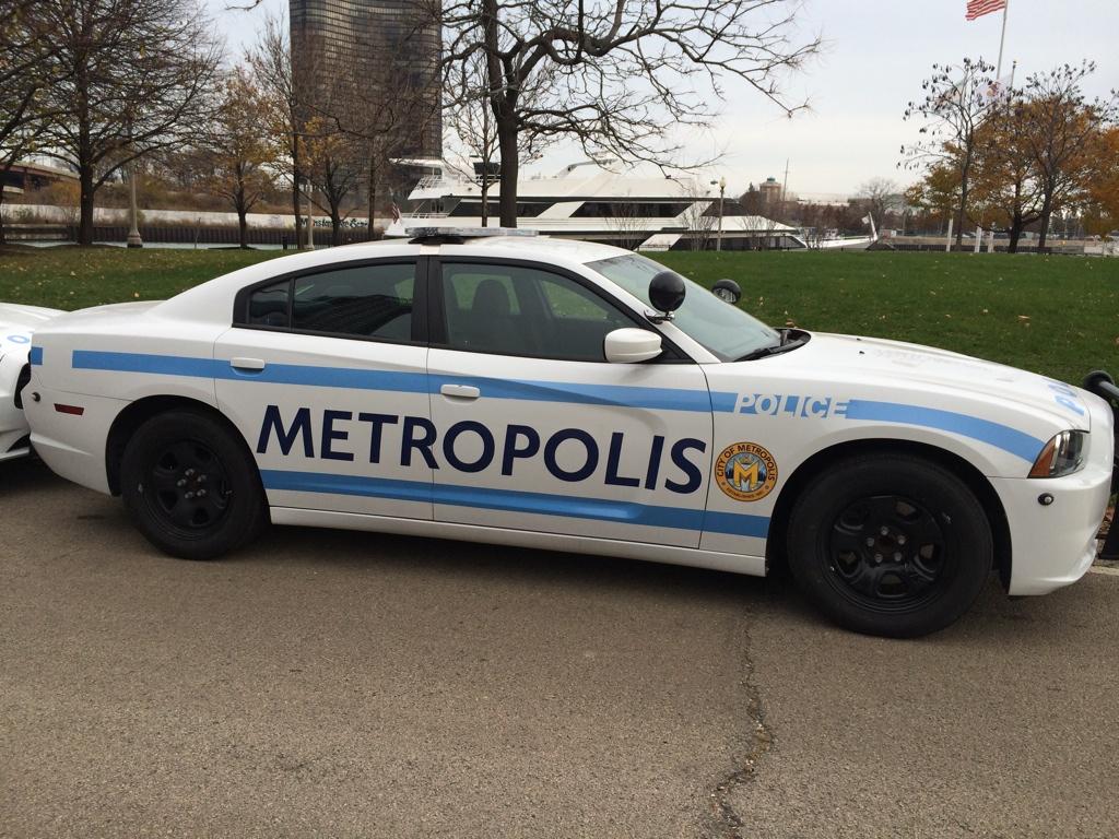 @filming_chicago got photos of Metropolis police cruisers parked along the Chicago Riverwalk where the pier to North Breakwater Access (where Bruce’s helicopter lands) connects to the mainland, indicating there was likely additional footage of Bruce’s car passing by these police vehicles in Their War Here.