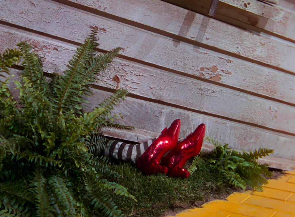 Ground-level shot on Superman’s red boots protruding from under the debris, possibly another reference to The Wizard of Oz, where Dorothy’s house crushed the Wicked Witch of the East and only her ruby slippers are visible from underneath. Later, Lex remarks, “Ding dong, the god is dead,” another reference to that film: “Ding dong, the witch is dead.” One could say Superman is the Wicked Witch to Lex.