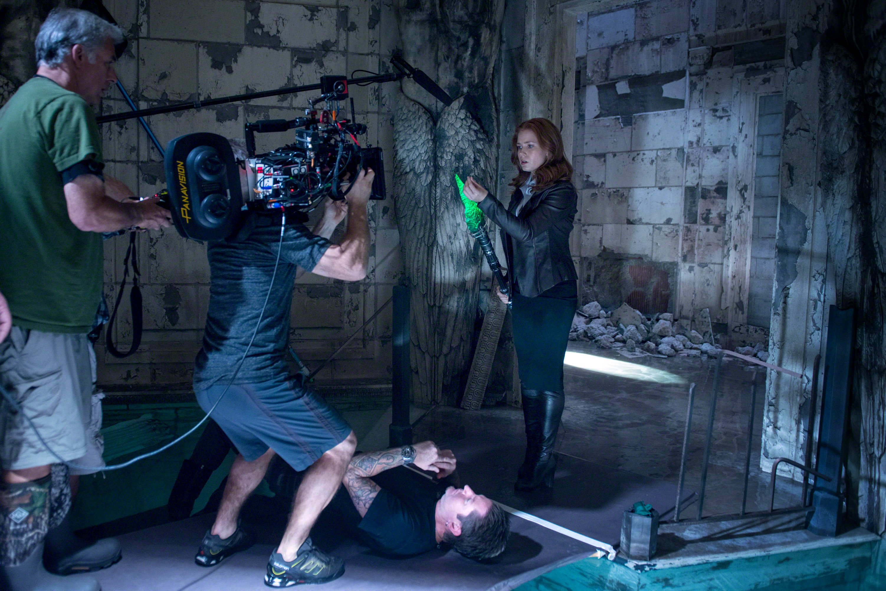 Zack Snyder mentioned during the BvS Watch Party that the idea for the flooded stairwell came from a flooded area they found at Michigan Central Station. He later confirmed in the director’s commentary (2:15:16) that the pool was built on a soundstage at the late Michigan Motion Picture Studios, Pontiac, Michigan. The sequence was shot in June or July 2014 when the crew were filming in Pontiac. Set photographer Clay Enos tweeted a photo of the set.