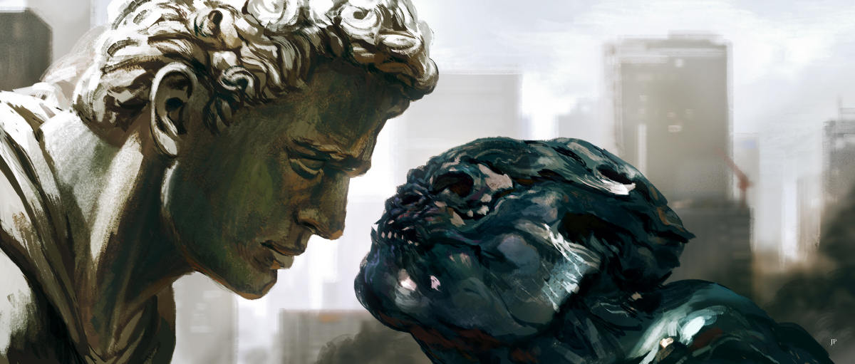 Lex closes his eyes as the monster’s breath blows his jacket open. He seems completely unafraid and confident.