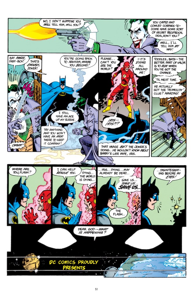 “And so this is the Flash running through time, coming back to warn Batman not to kill Lois Lane, I guess? Or that Lois Lane is the key. I’m not exactly sure what he’s supposed to do with that knowledge at this point.”
