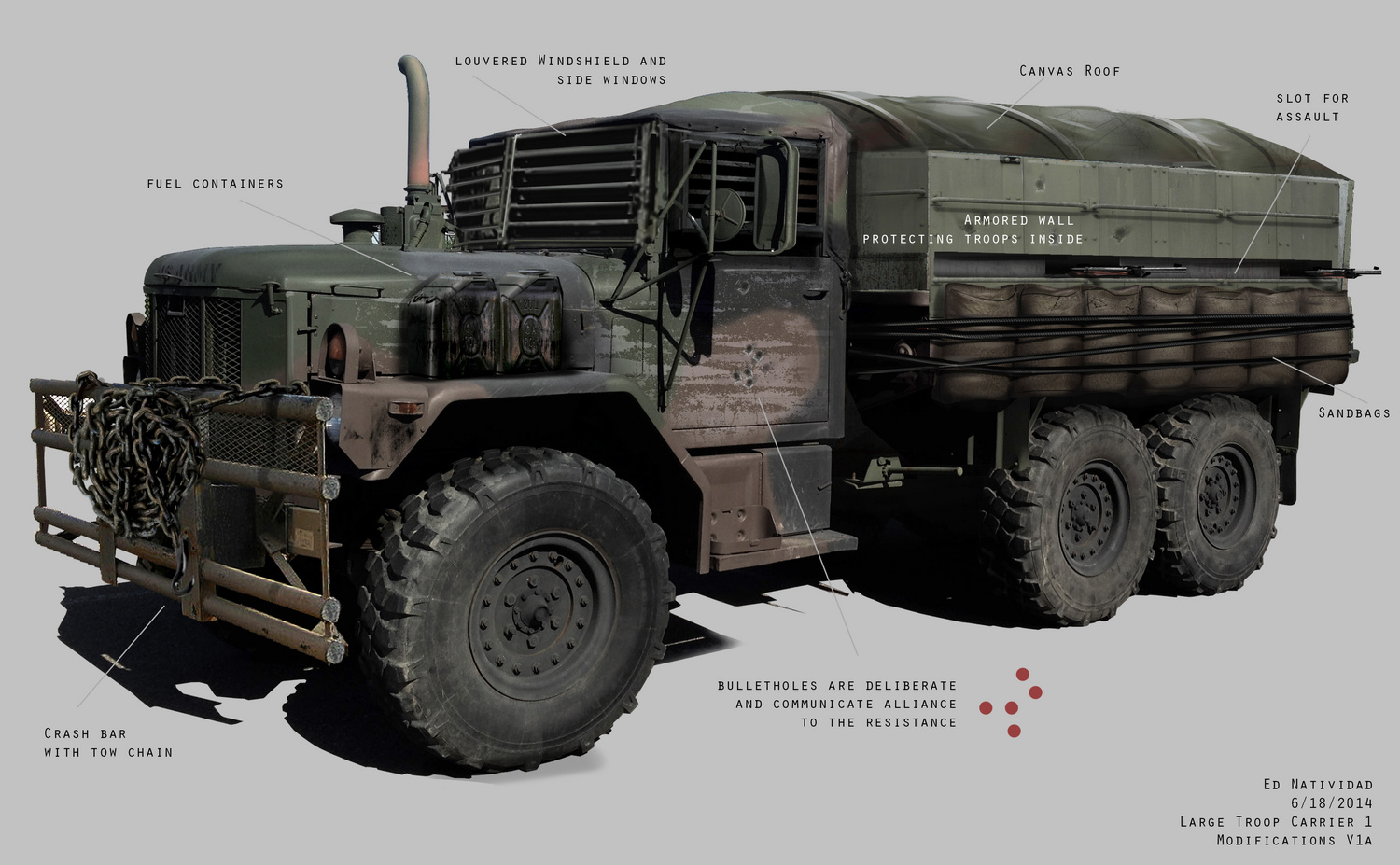 Several other soldiers in identical uniforms pour from the other convoy vehicles to aim their guns.