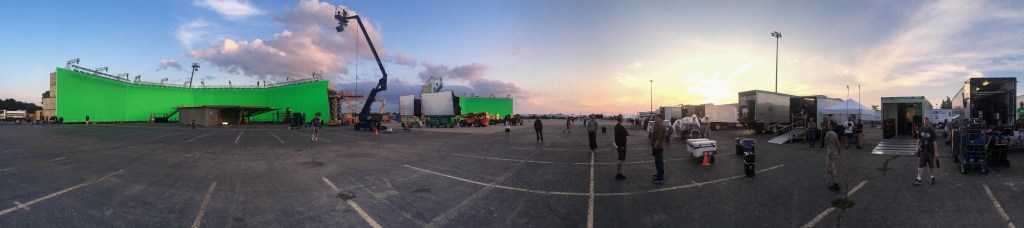“We built this helipad in the parking lot. We built a helipad that you could land on but was elevated about twenty feet off the ground, so we could put green screen all around it and it allowed us to shoot these shots. We shot at night, of course, but all that was all a big green screen environment out there, to look over to Gotham across the way.”