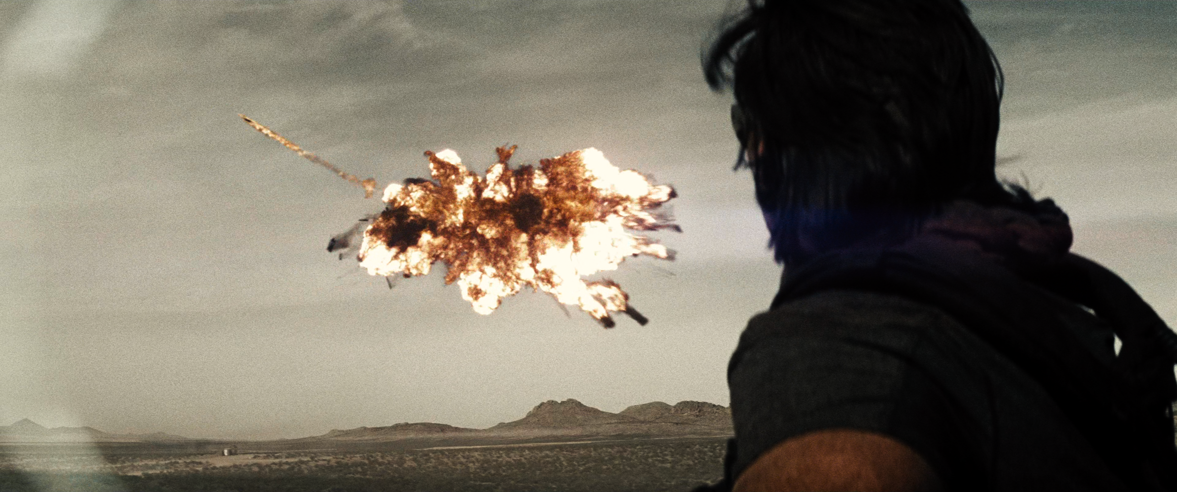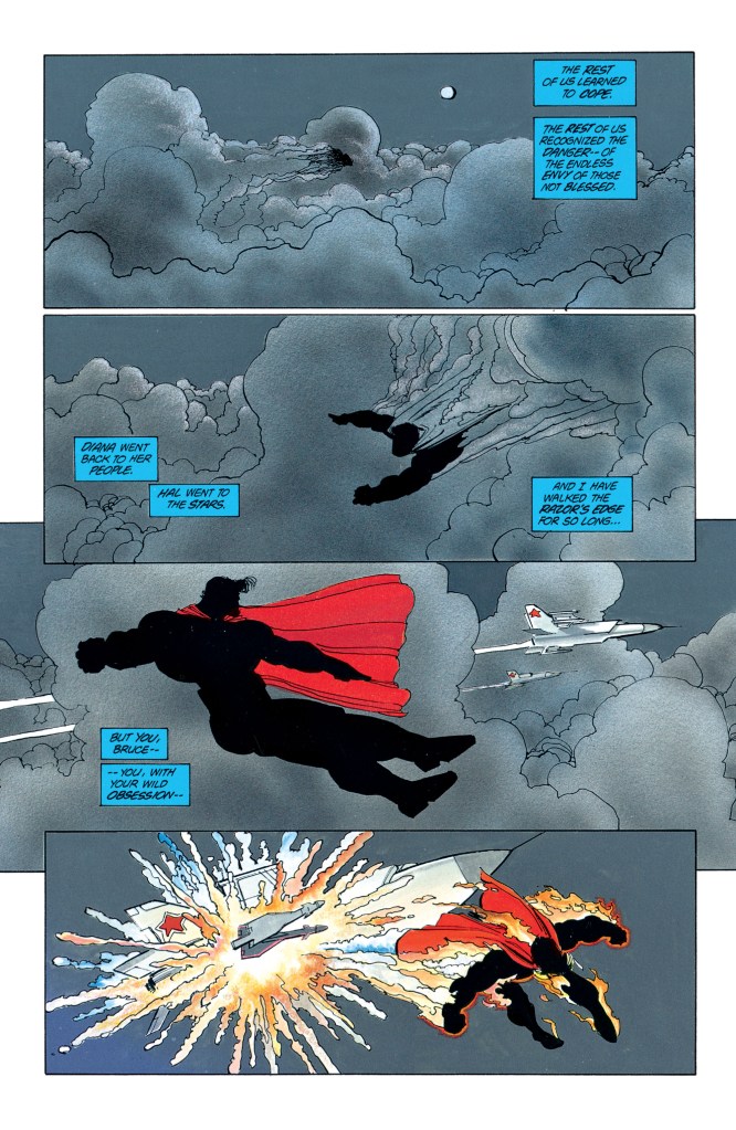 Shoulder shot from Knyazev to see the explosion. Then Superman intercepts the drone and annihilates that too, ending the threat. Knyazev watches, turns back to the road, and grins. A job well done. This also bears a resemblance to Superman destroying a Russian jet in The Dark Knight Returns.