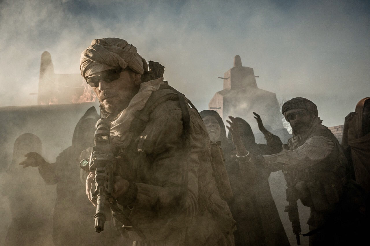 Out in a desert encampment, we emerge from a tent in a tracking shot behind the leader of a small US military unit (Bailey Chase) on the phone with HQ. His team is assembled and ready beside their horses. He contests the order. “There’s still a civilian in the compound. We’ll extract her.”