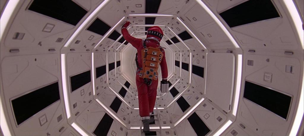 Ground-level shot behind Lex’s feet, and he travels down the access hallway in slow-motion. A technician/scientist walks by as the camera follows Lex into a cloud of smoke. Zack Snyder confirmed this shot is a reference to the 1968 Stanley Kubrick film 2001: A Space Odyssey, where the protagonist similarly walks down a hexagonal sterile hallway very slowly. Both Snyder and this film’s director of photography Larry Fong hold Kubrick’s film among their favourites. The hexagonal shape returns again in the Batman/Superman fight later, and is a possible motif of the Taoist cosmological Bagua symbols that Reel Analysis discusses in this video.